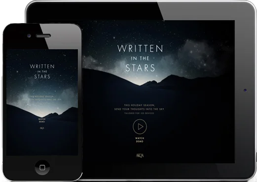 Written in the Stars is a mobile browser experience designed to reconnect loved ones who could not be together during the holidays (internal agency project). Reaching out was as simple as sending a text message which came to life in the stars once the device was pointed to the sky.